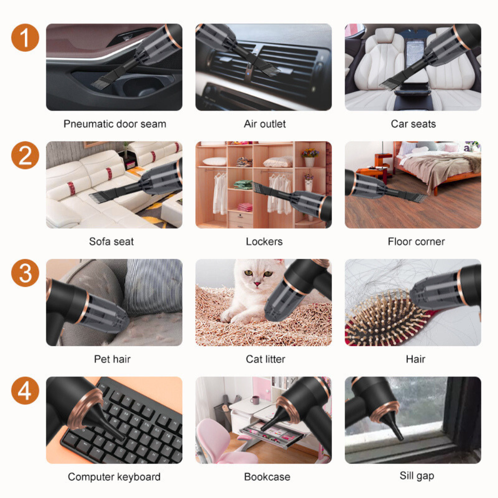 Multi-Purpose Use β Perfect for cars, sofas, beds, pet hair, keyboards, curtains, and more.